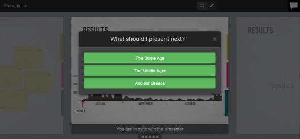 Live Sharing includes the ability of running polls whenever desired. Each person in the audience will have your question pop up on their device.