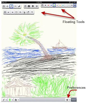 A free version of Sketch Pad called Sketch Pad 3 is available and it appears to pretty much do most of what its $.99 brother/sister will do with one exception: Sketch Pad 3 has an advertisement banner running at the top that some of you might find distracting. There are two ways to deal with this: 1. Turn off your Wi-Fi and the banner will disappear. 2. Place the floating tools on top of the ad banner to cover it up.